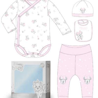 Komplektis on: – pikkade varrukatega body 1tk – püksid 1tk – müts 1tk – rinnatükk 1tk Materjal: Puuvill 100% Pika