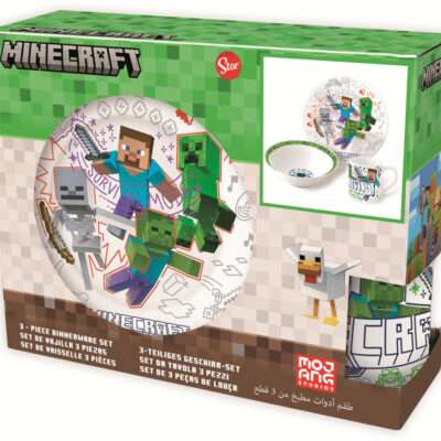 Minecraft portselanist õhtusöögikomplekt kinkekarbis Võib kasutada mikrolaineahjus ja nõudepesumasinas pestav. Materjal: portselan Komplektis: 1 sügav kauss 1 lame taldrik 1